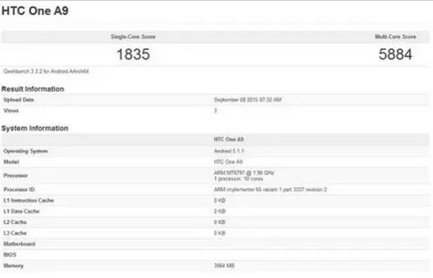 В таблице полученной из официальных источников, видно что HTC One A9 оснащен процессором MT6797 известным так же как MediaTek Helio X20 с установленными десятью физическими ядрами. В MT6797 так же встроен многоядерный ускоритель Mali‑T880 ARM.
